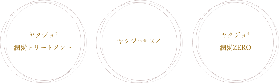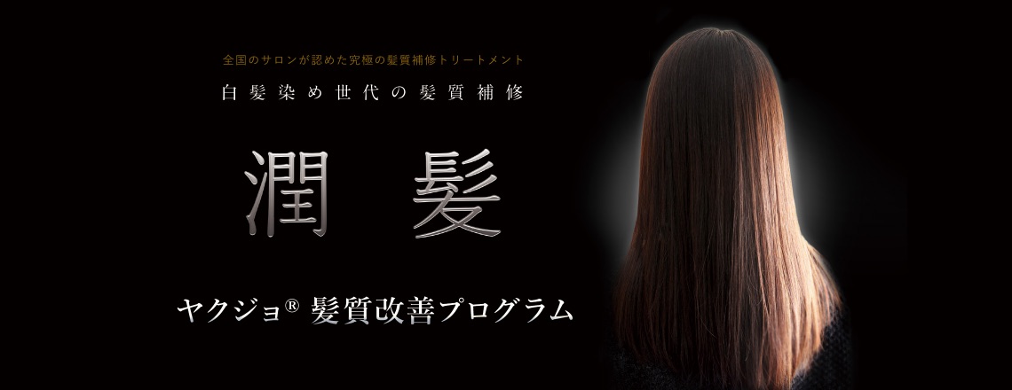 ヤクジョ®スイをベースに、最高の原料を抑え、原液で作られたのが潤髪トリートメント。最高の潤いと艶感、弾力を再現して、白髪染め世代の髪質を補修します。